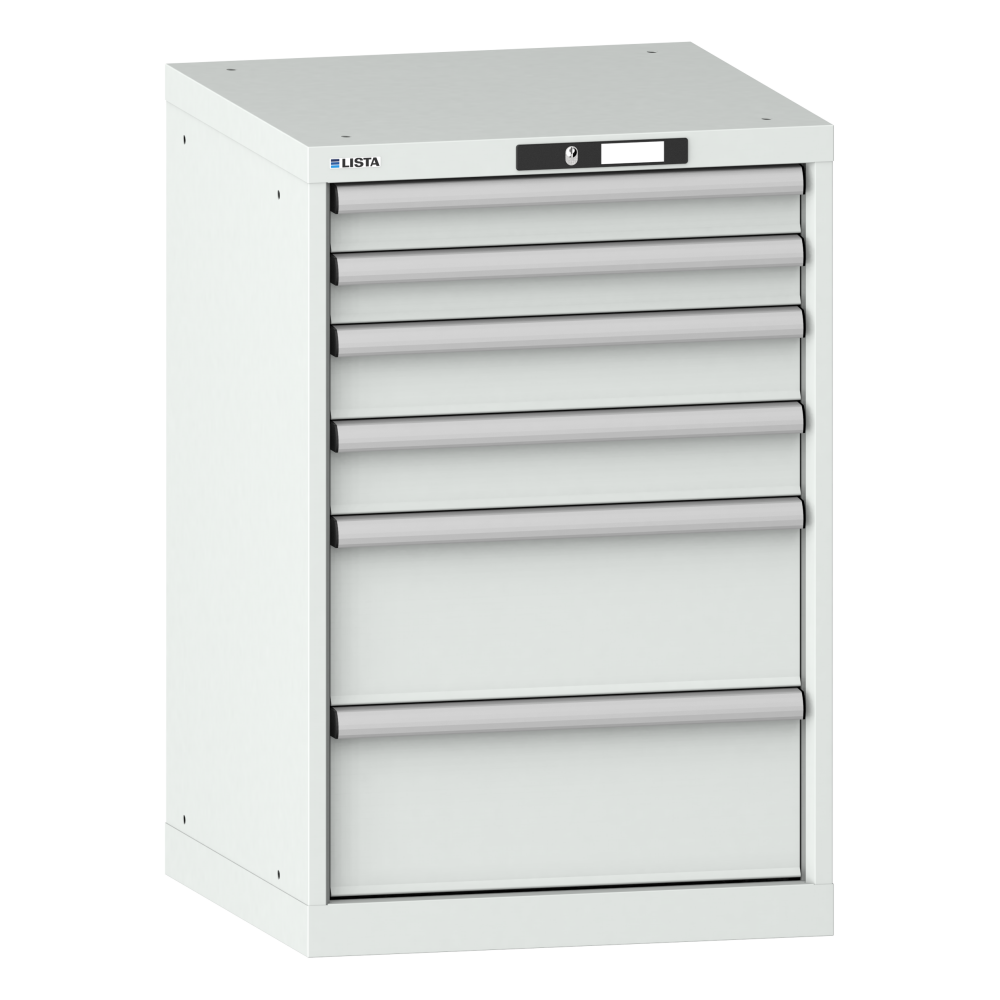 Drawer cabinet 27x27E (WxDxH) 564x572x850mm 6 drawers (2x75/2x100/2x200) 75kg KEY Lock Light grey RAL 7035