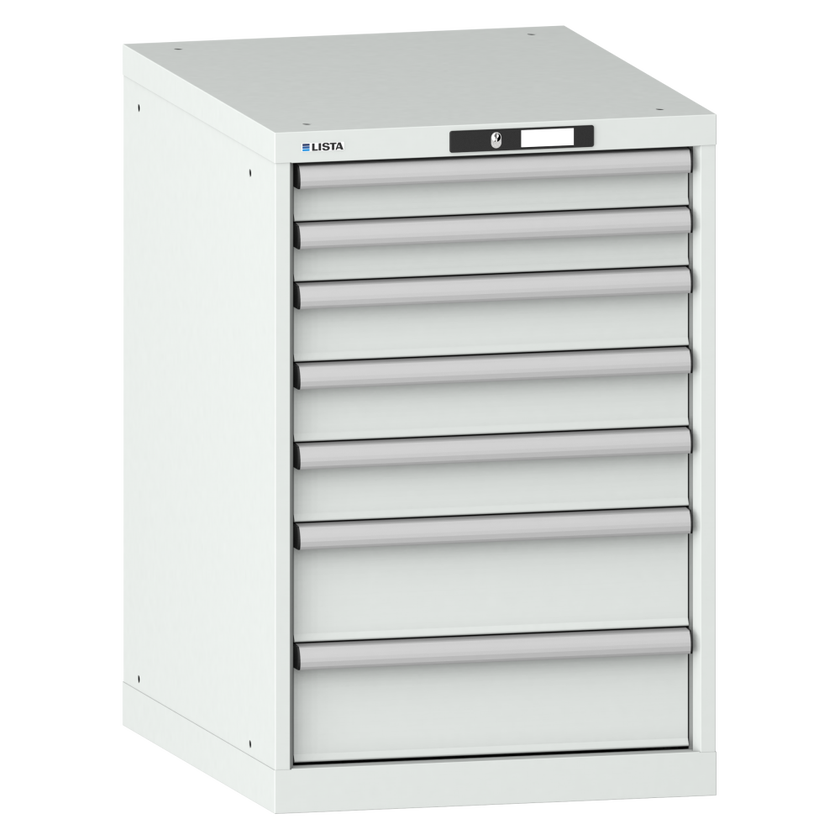 Drawer cabinet 27x36E (WxDxH) 564x725x850mm 7 drawers (2x75/3x100/2x150) 75kg KEY Lock Light grey RAL 7035