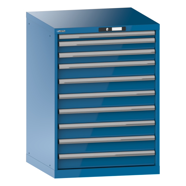 Drawer cabinet 36x36E (WxDxH) 717x725x1000mm 10 drawers (1x50/2x75/7x100) 75kg KEY Lock Light blue RAL 5012