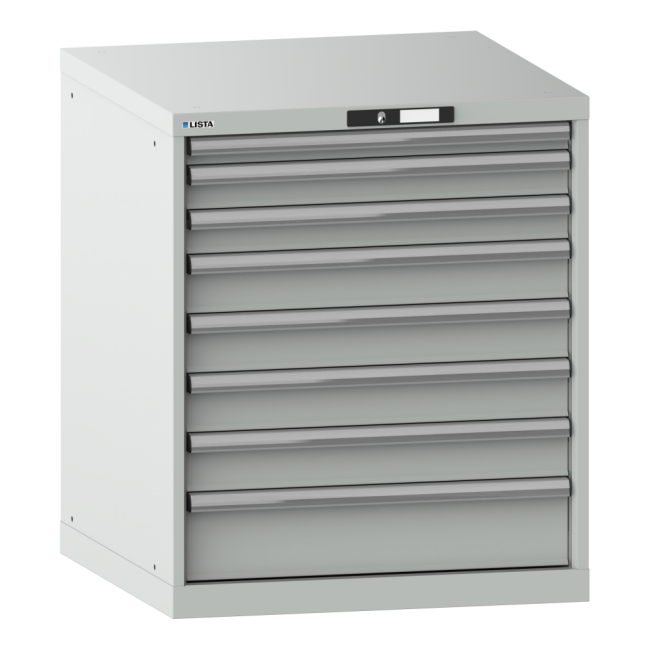 Drawer cabinet 36x36E (WxDxH) 717x725x850mm 8 drawers (1x50/2x75/4x100/1x150) 75kg KEY Lock Light grey RAL 7035