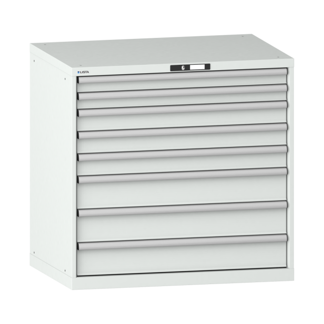 Drawer cabinet 54x36E (WxDxH) 1023x725x1000mm 8 drawers (2x75/3x100/3x150) 75kg KEY Lock Light grey RAL 7035